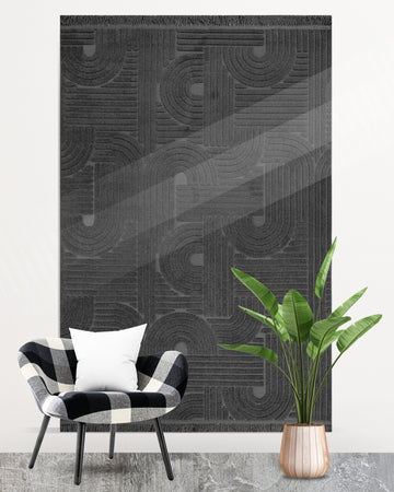 Trend Kıvrım Desen Makine Halısı Antrasit