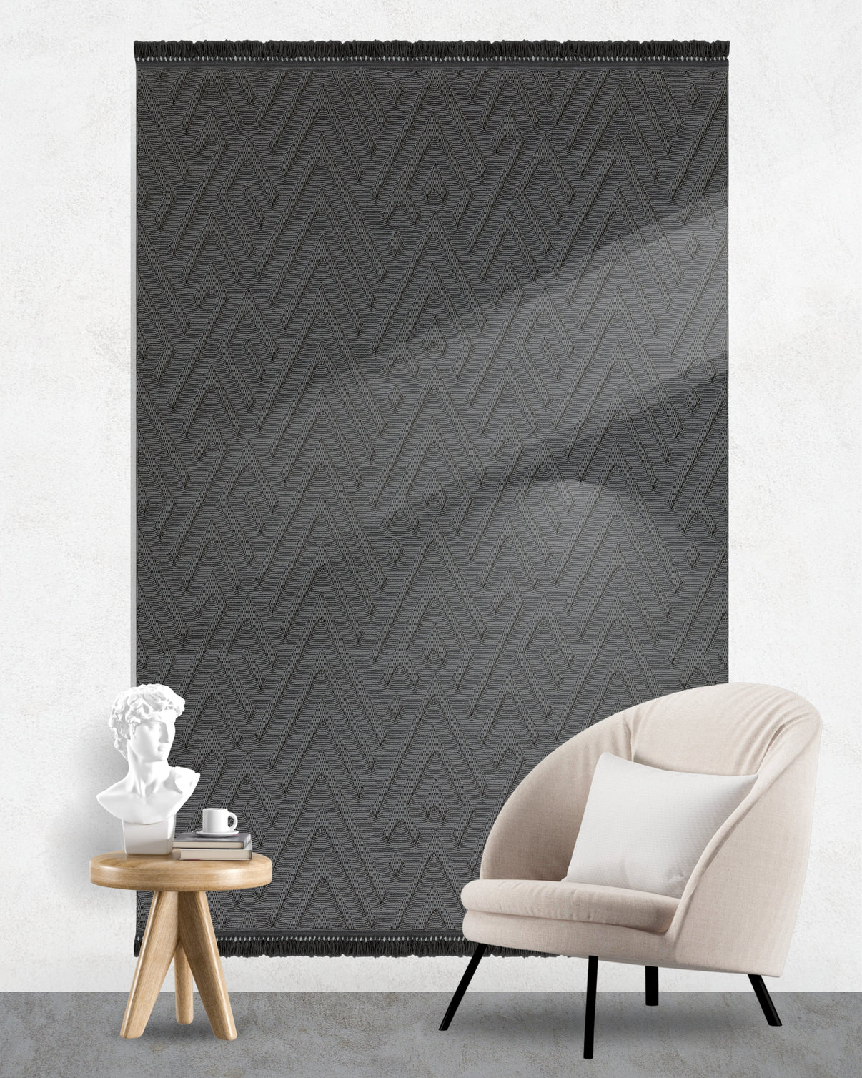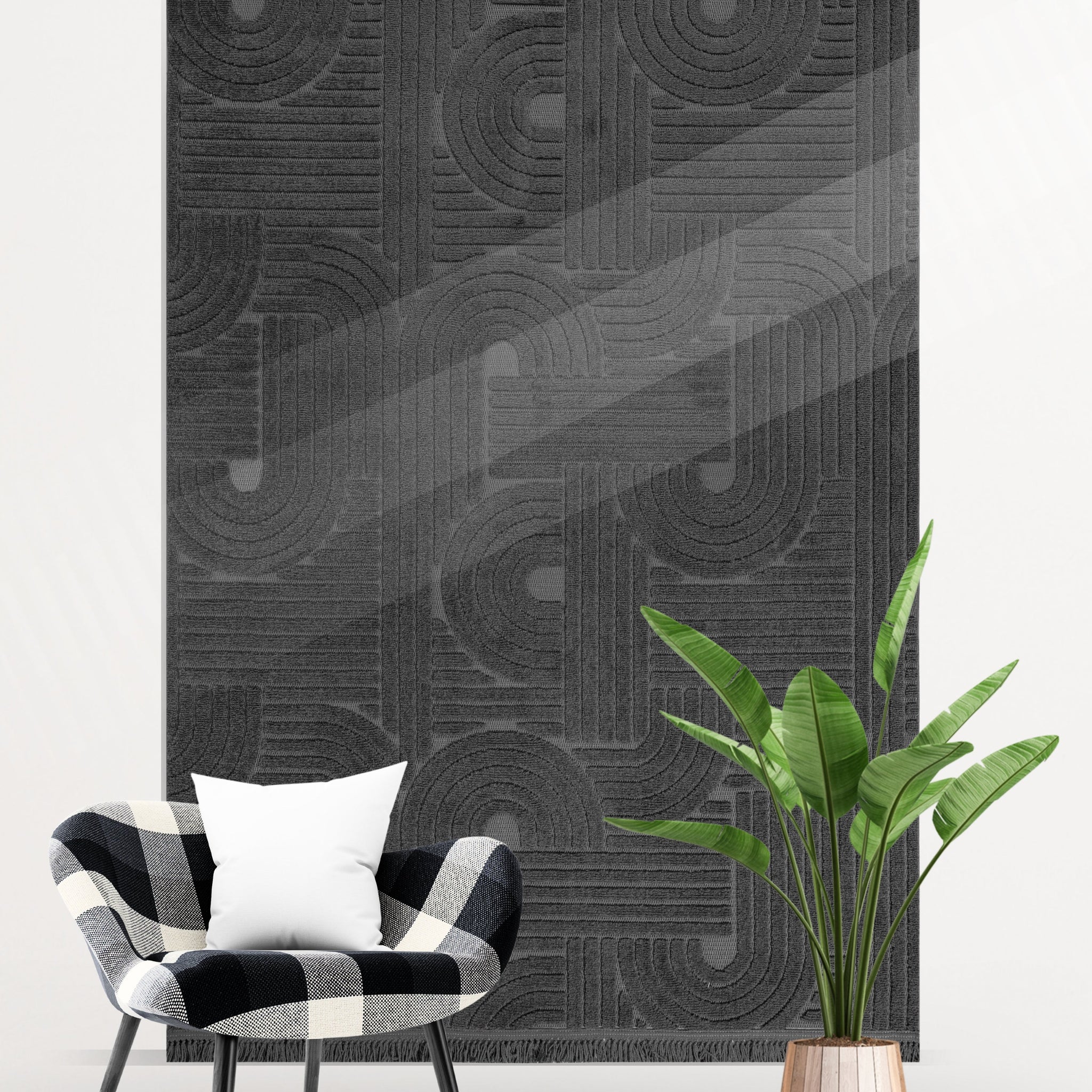 Trend Kıvrım Desen Makine Halısı Antrasit