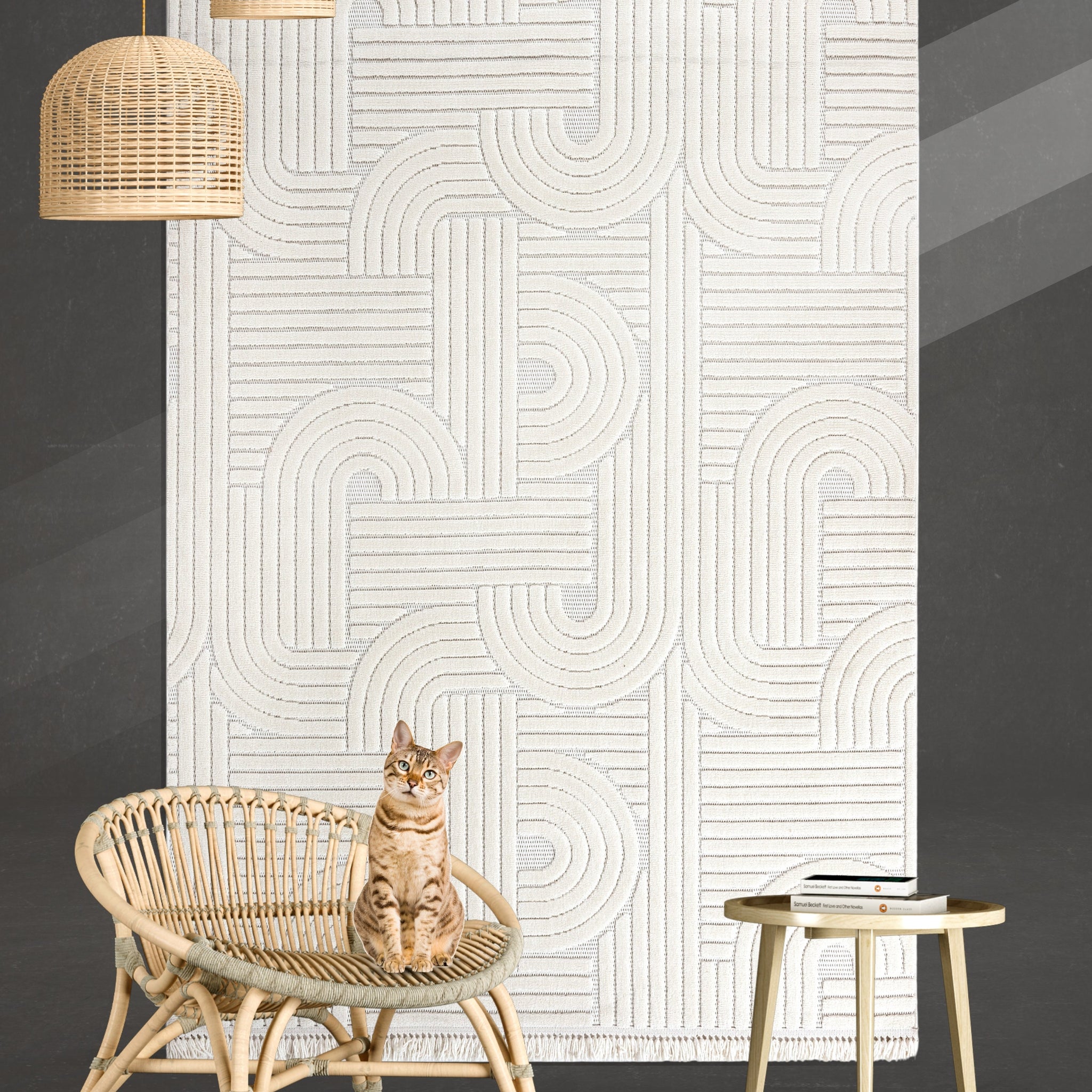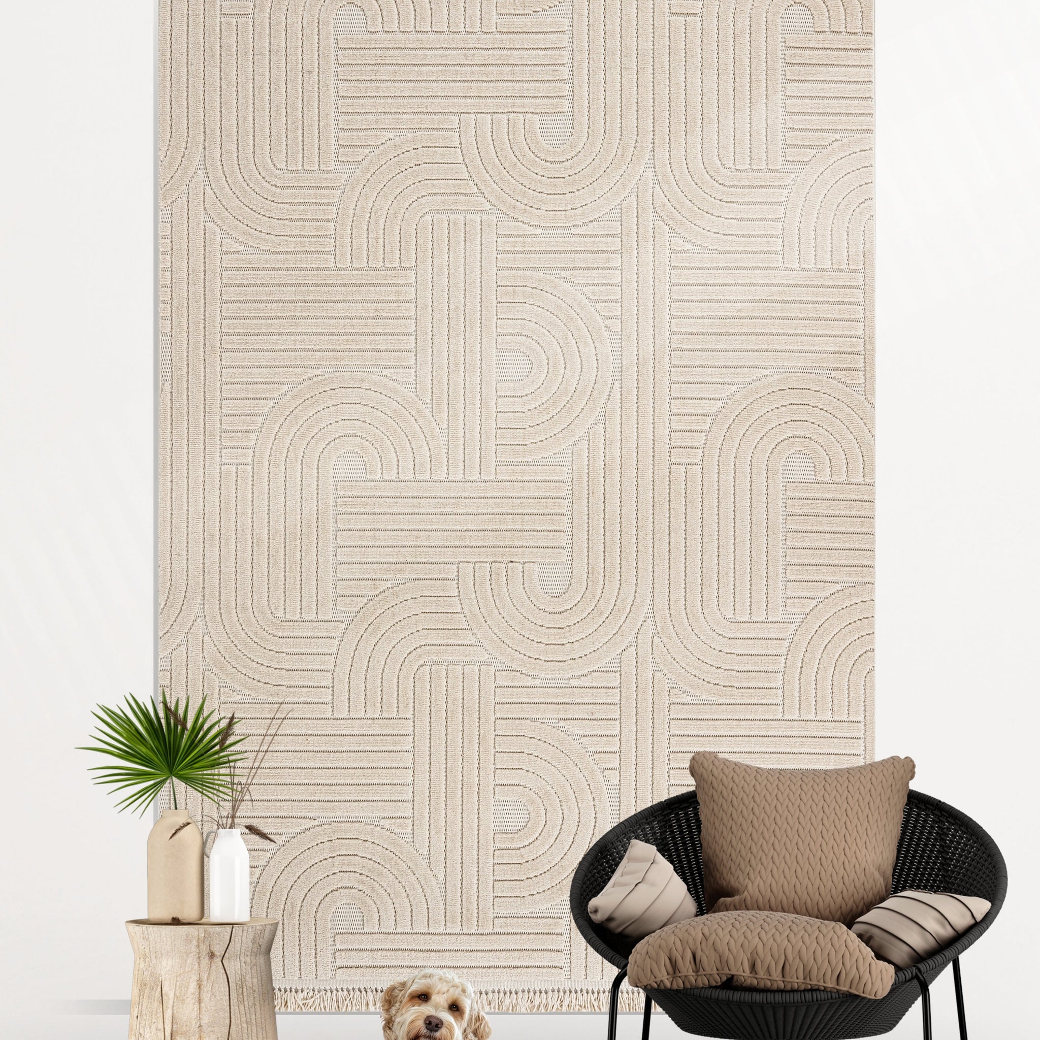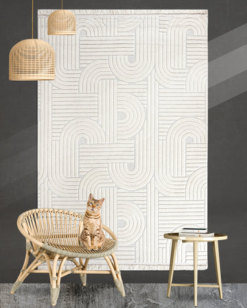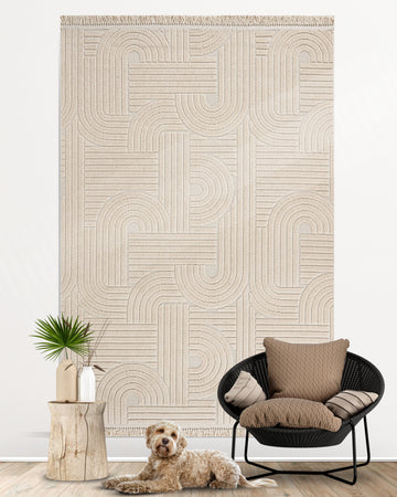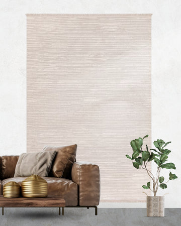 Buklem Soft Şerit Desenli Makine Halısı Krem