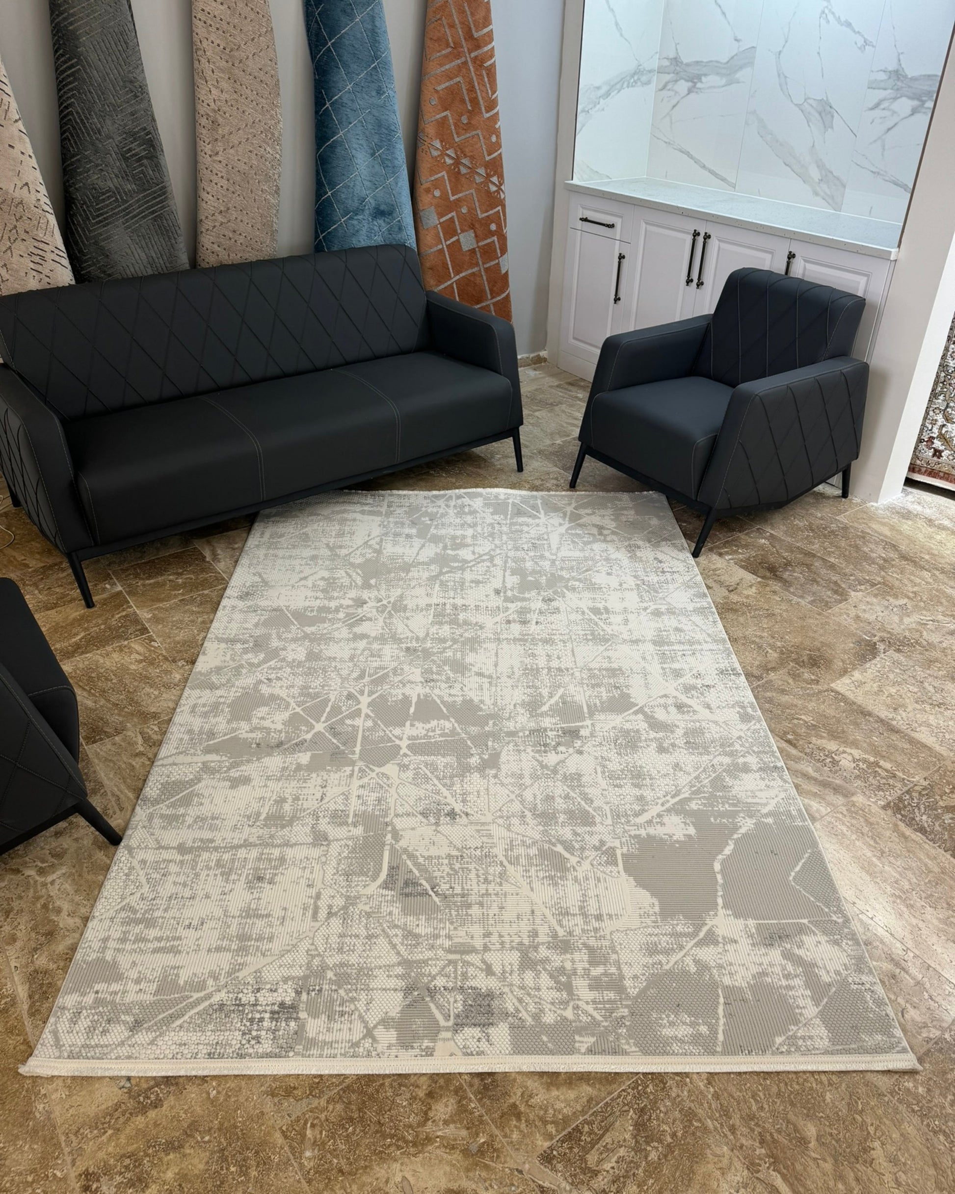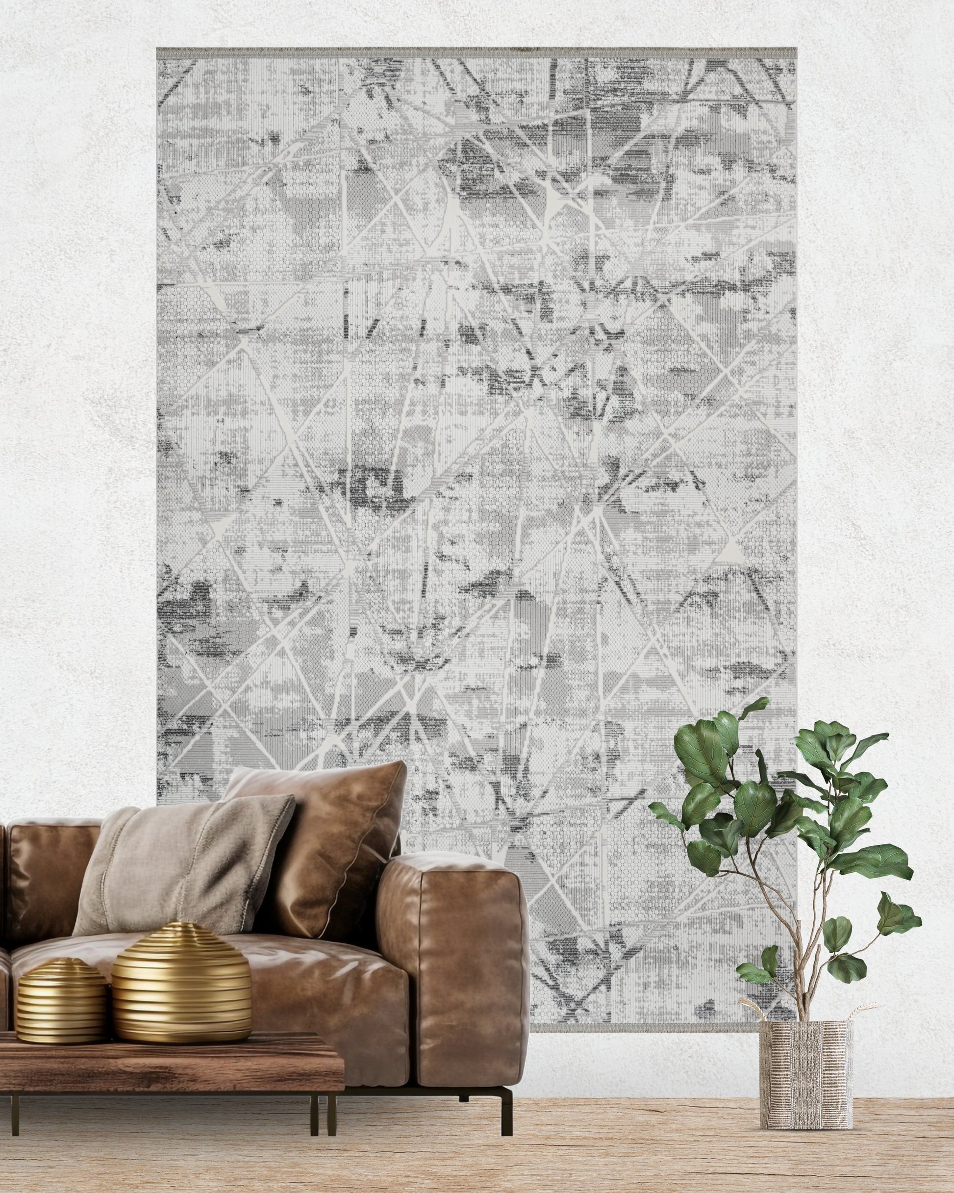 Merlin Modern Desen Makine Halısı Gri