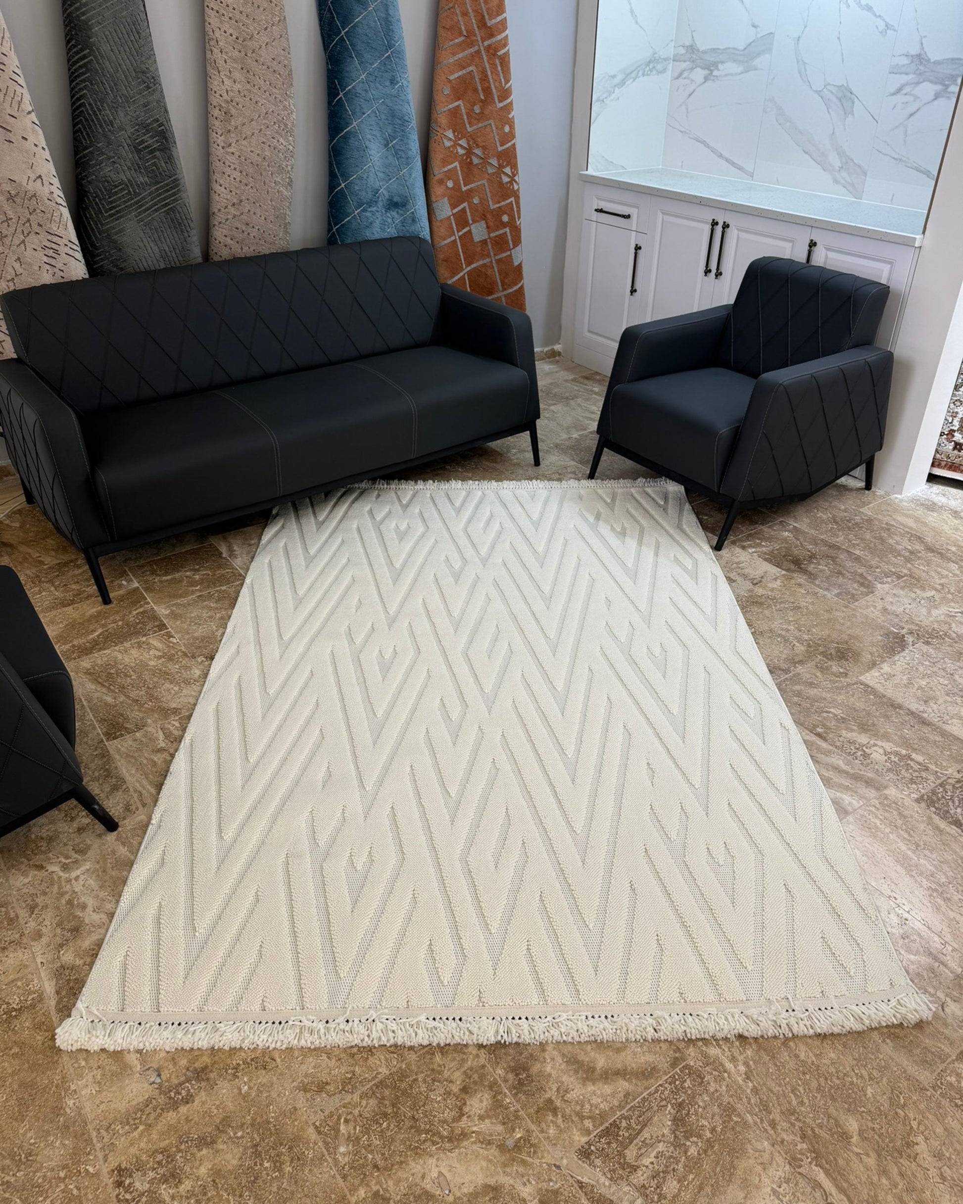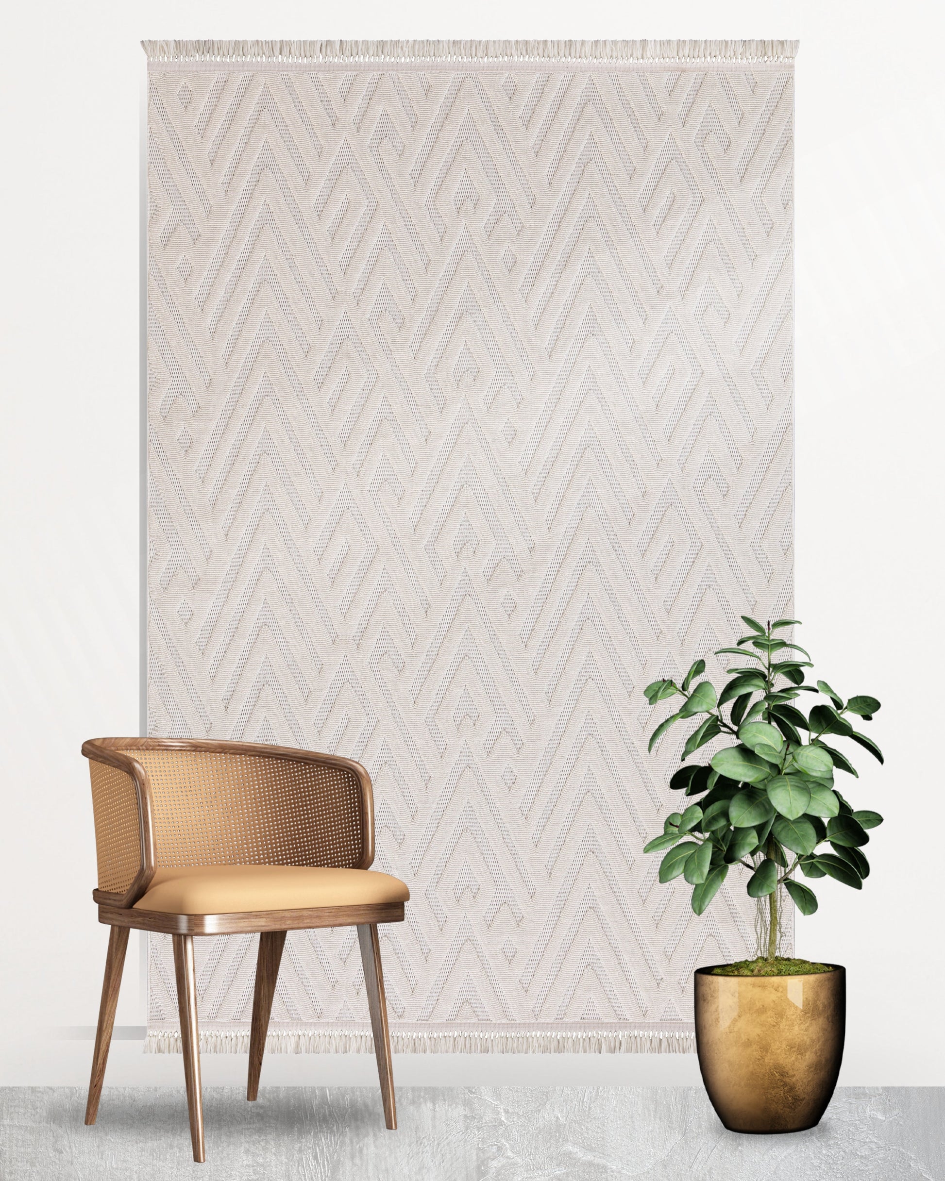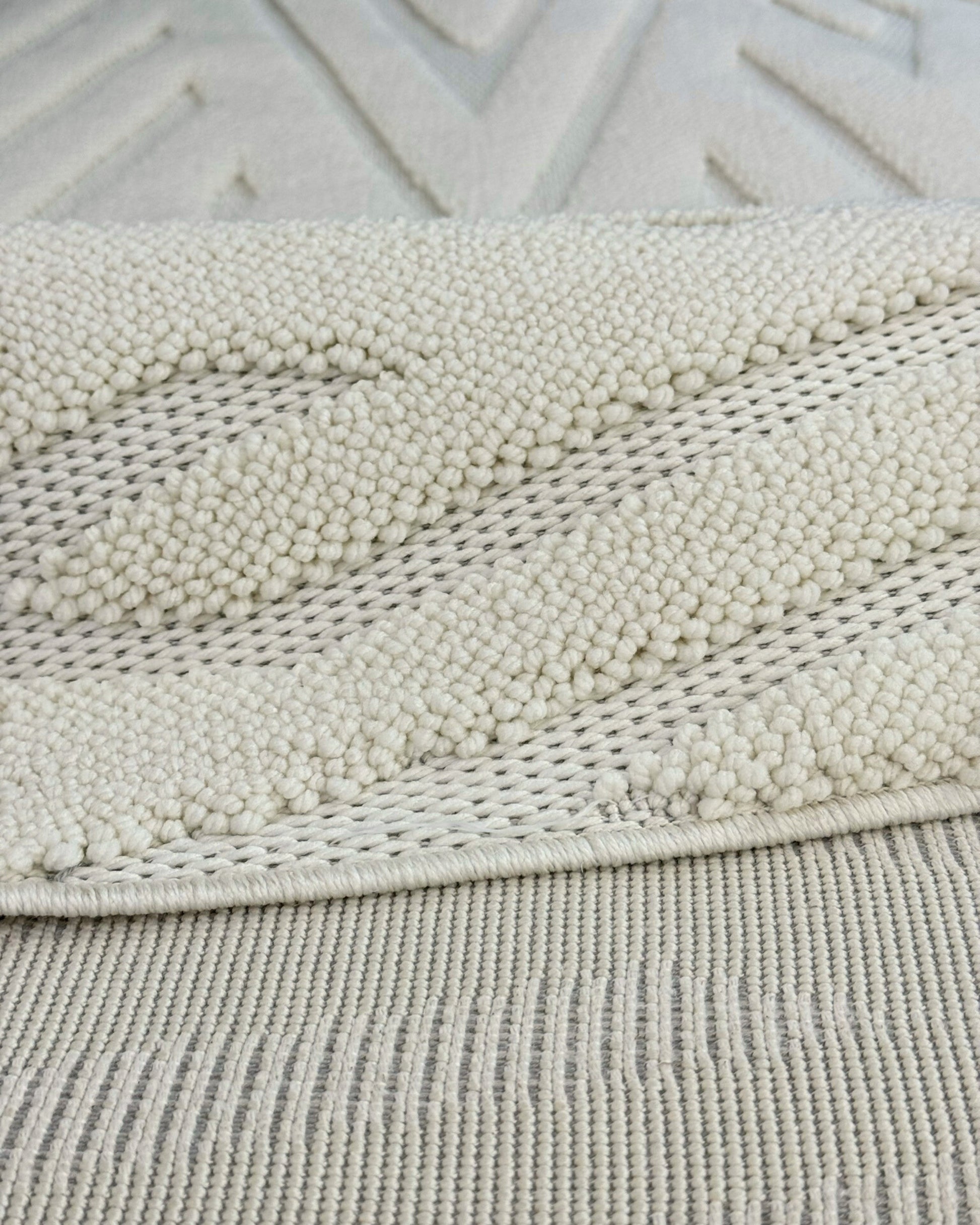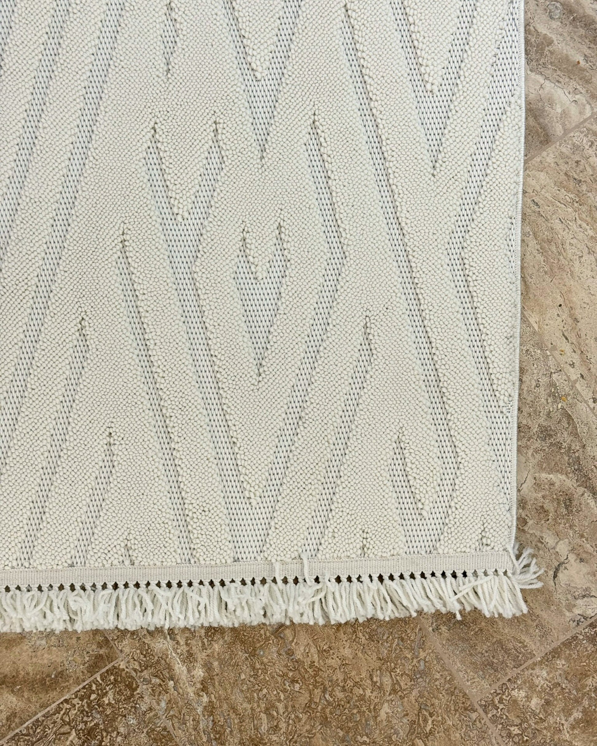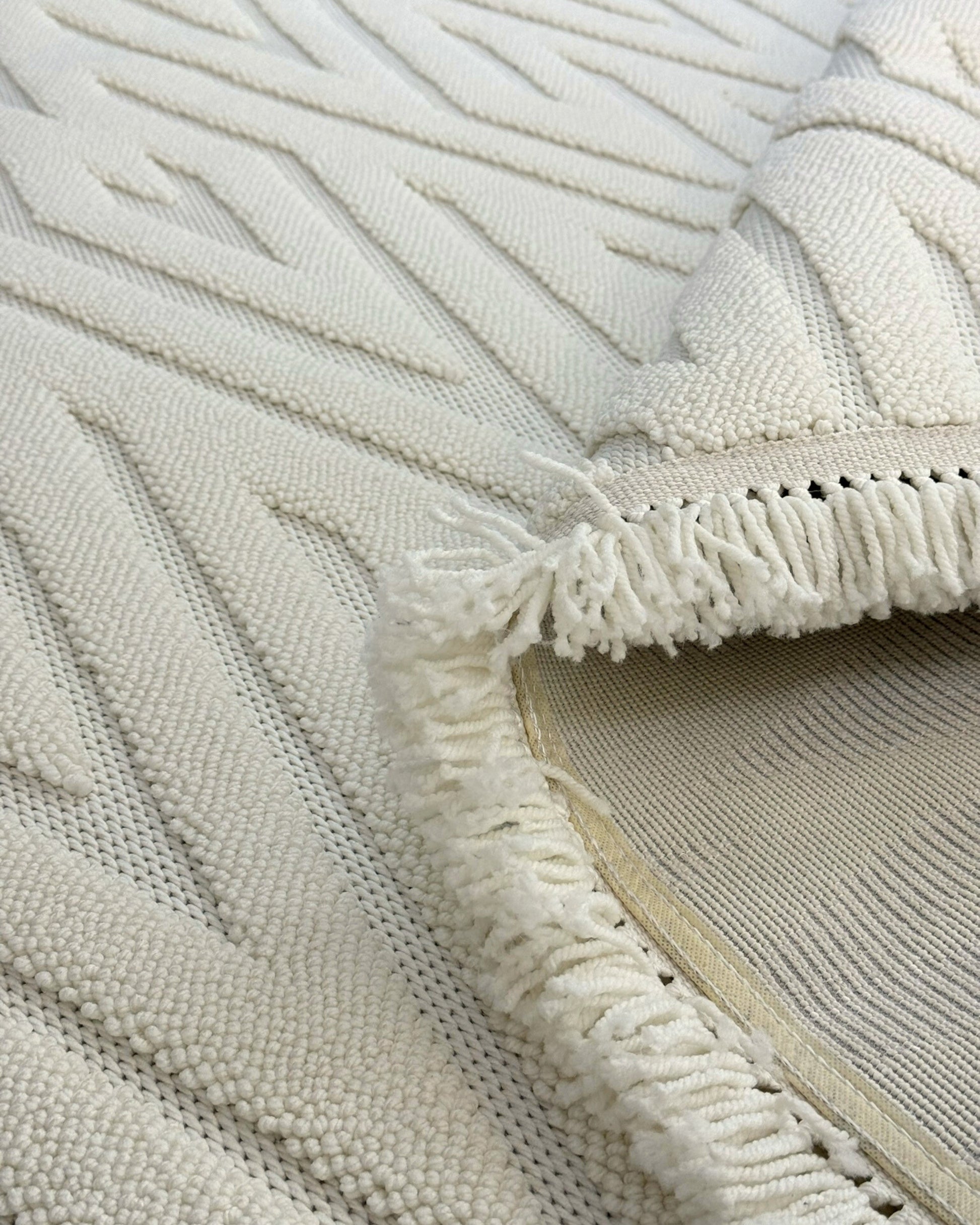 Buklem Zigzag Desenli Makine Halısı Krem