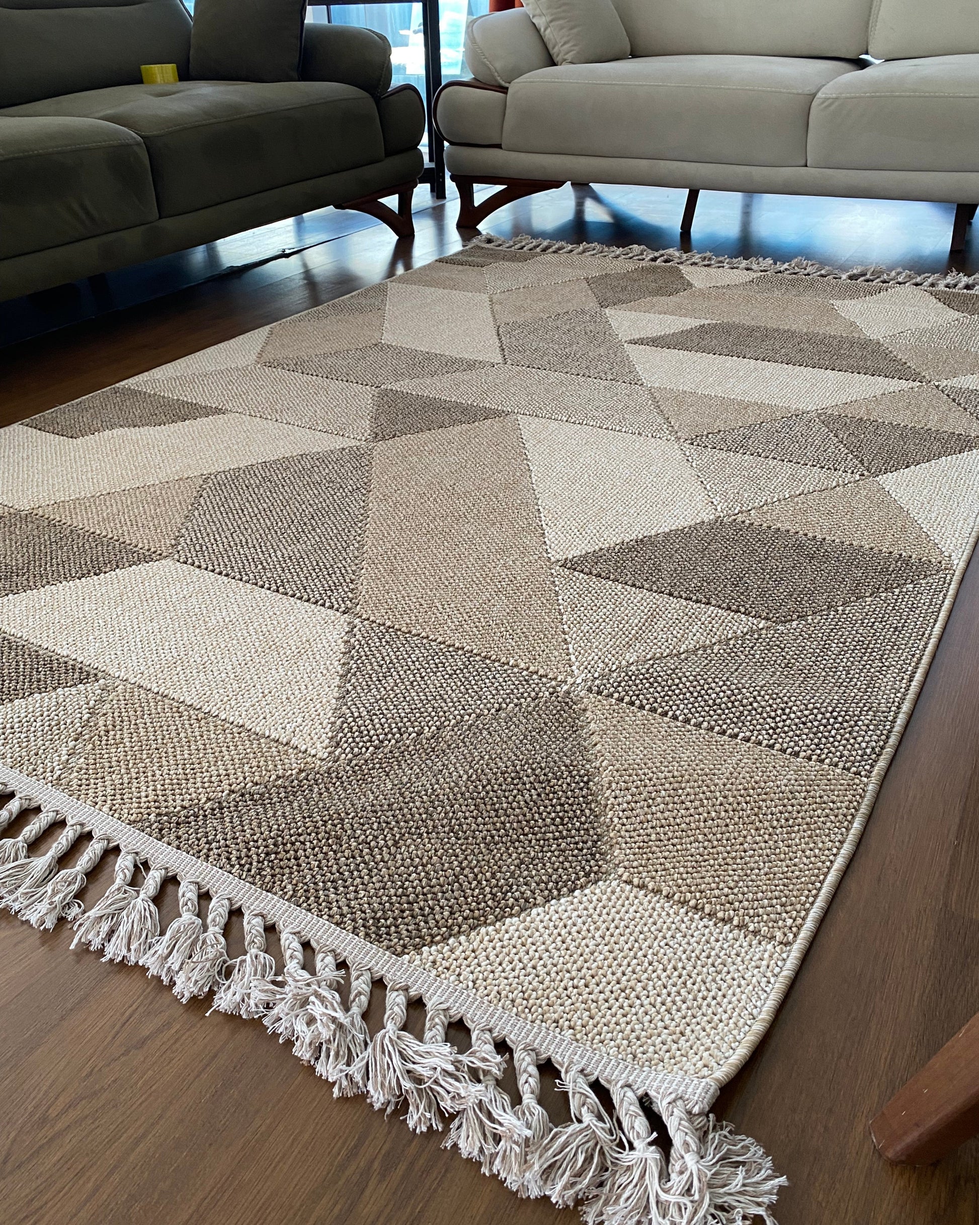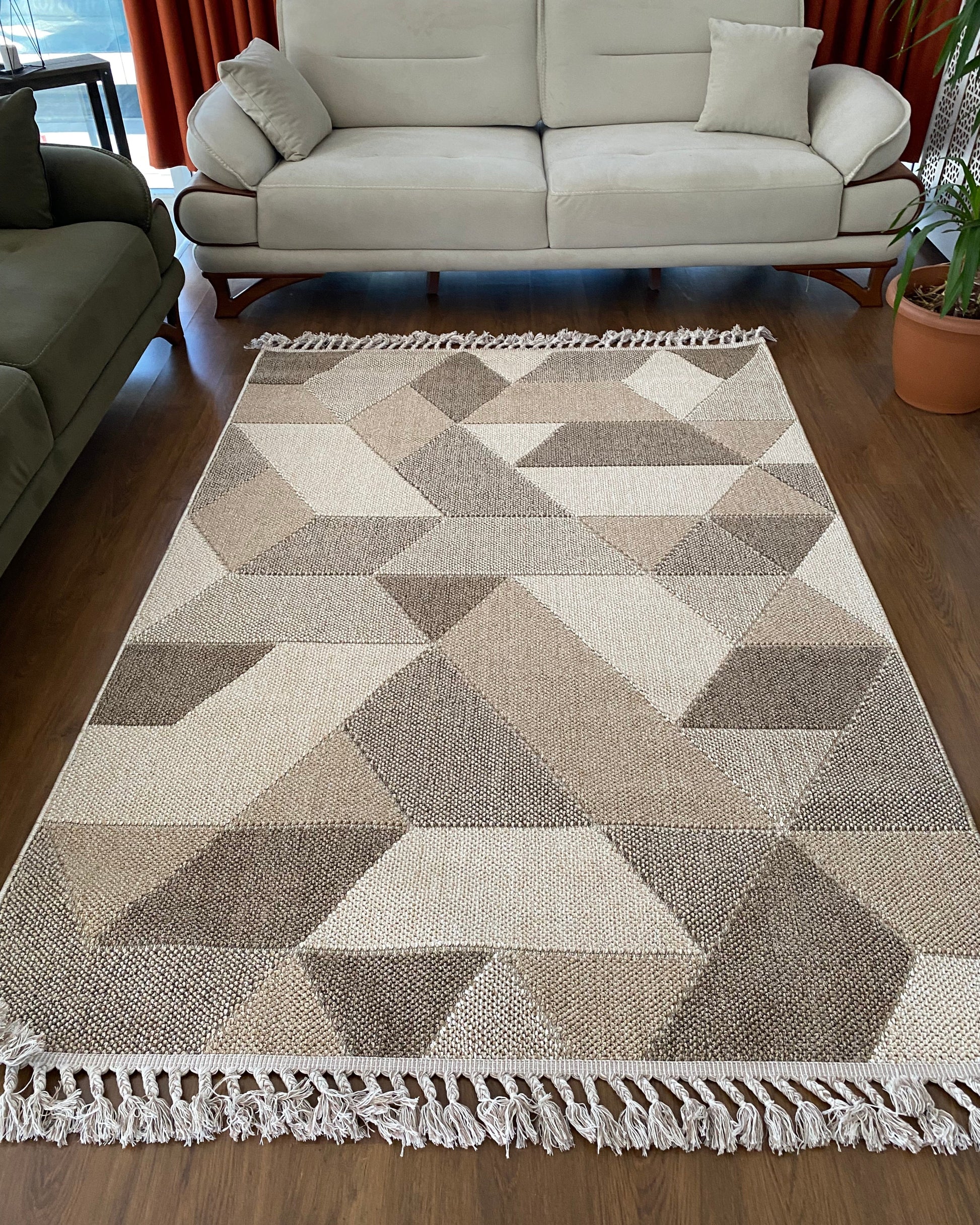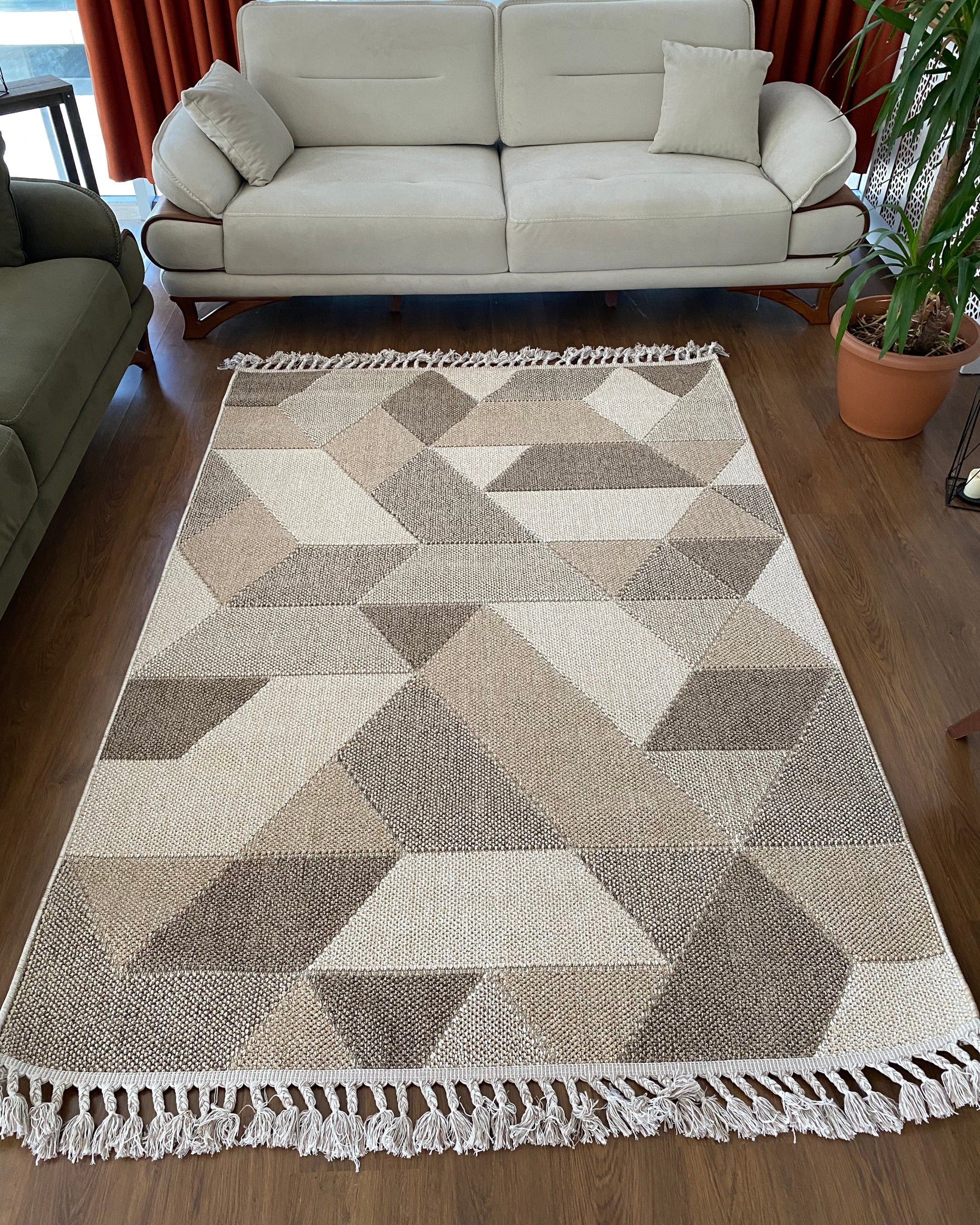 Dizayn Baklava Desenli Makine Halısı Kahve