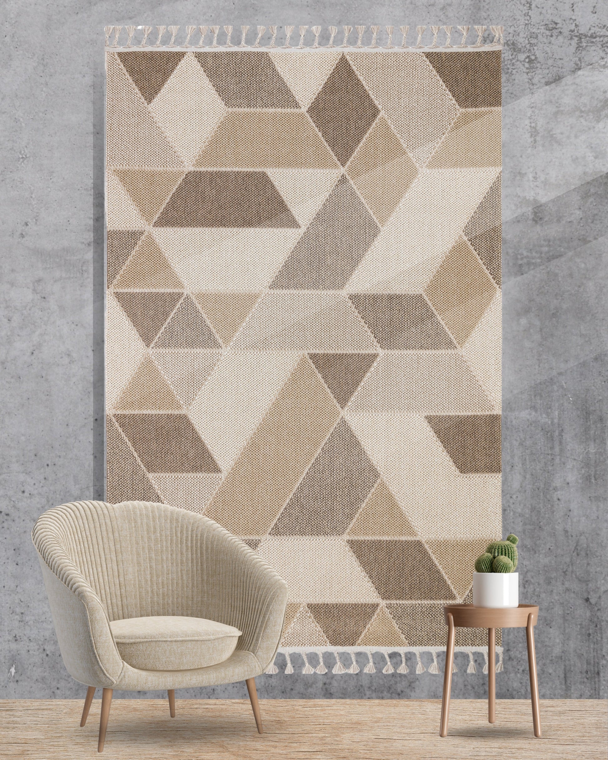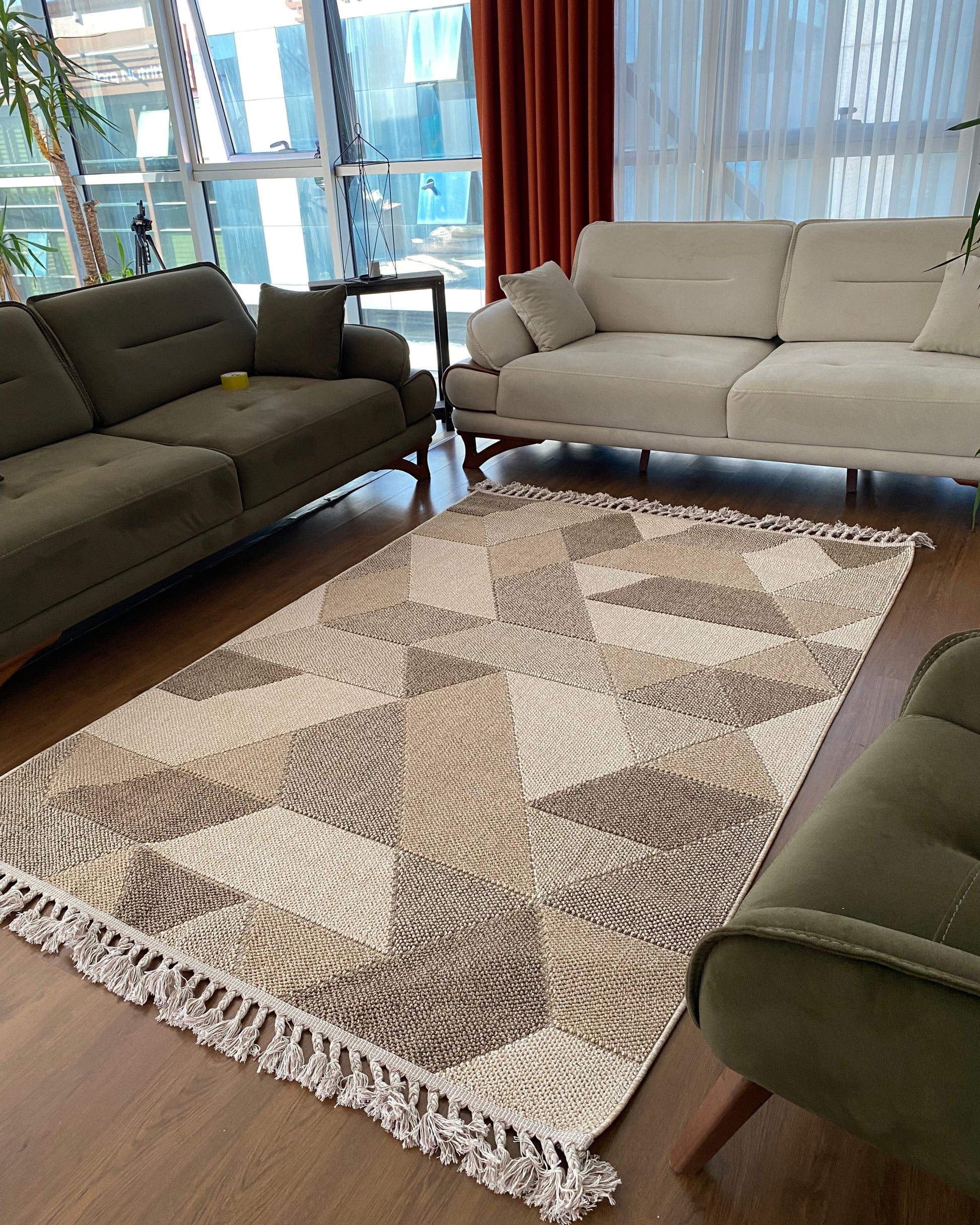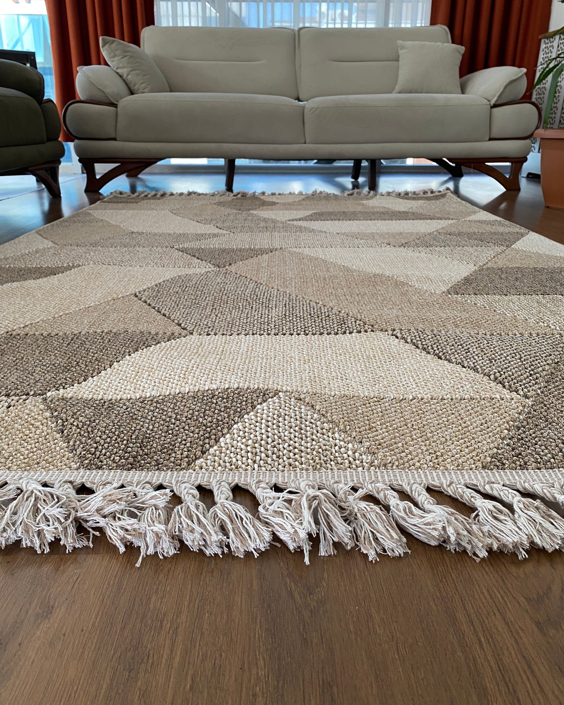 Dizayn Baklava Desenli Makine Halısı Kahve